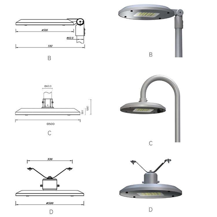 | Големина на куќиштето (мм) | Φ500*500*450 | Φ500*500*168 | Φ500*500*139 | Φ500*500*286 | Алуминиумско тело, оклопно стакло, водоотпорен гумен прстен, 304 s/s завртки, |