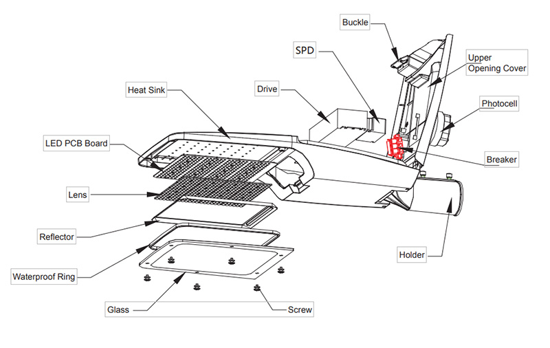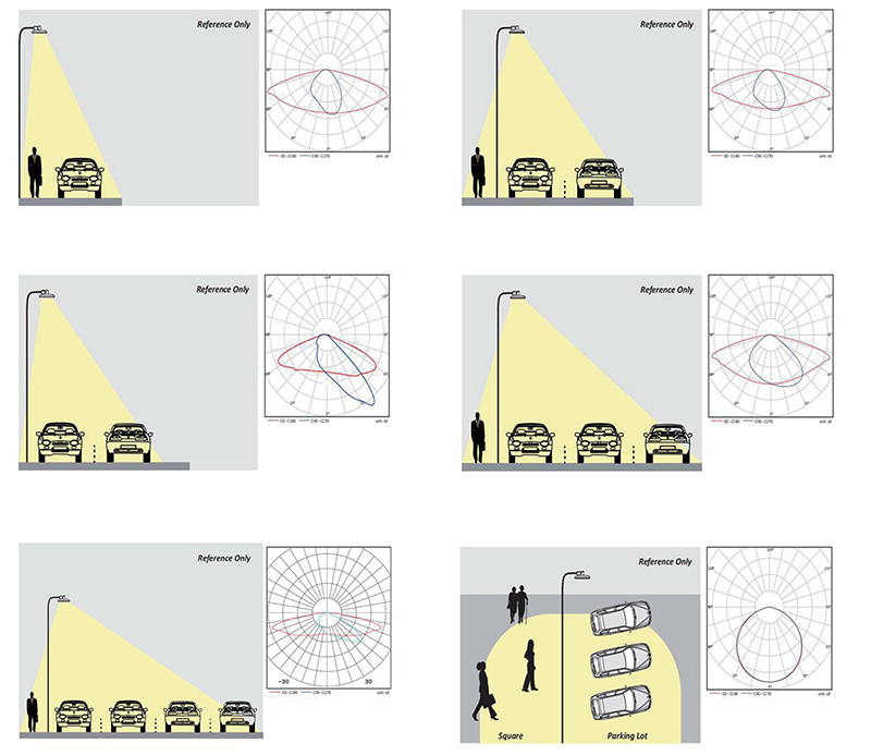 - Type Ⅰ/Ⅱ/Ⅲ/Ⅳ/Ⅴlight distribution can meetthe different requirements of road lighting.